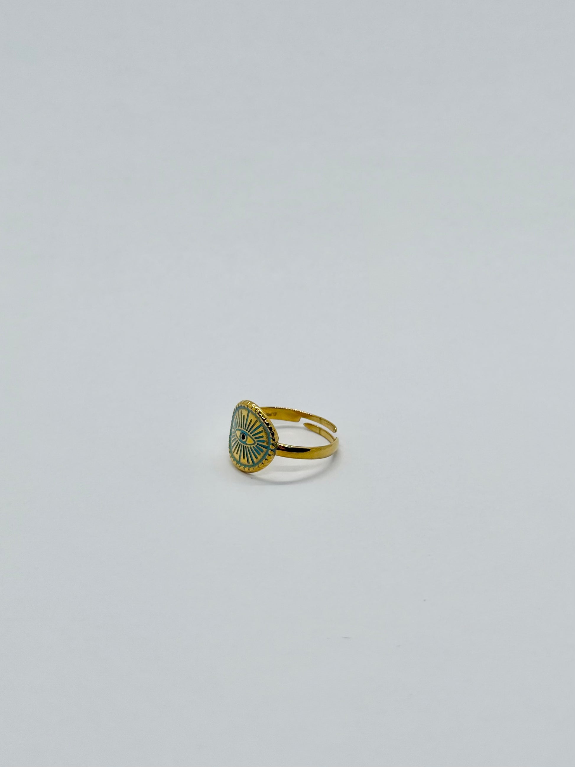Anello in Acciaio Inossidabile Oro Azzurro Rosso e Verde con Occhio Stilizzato