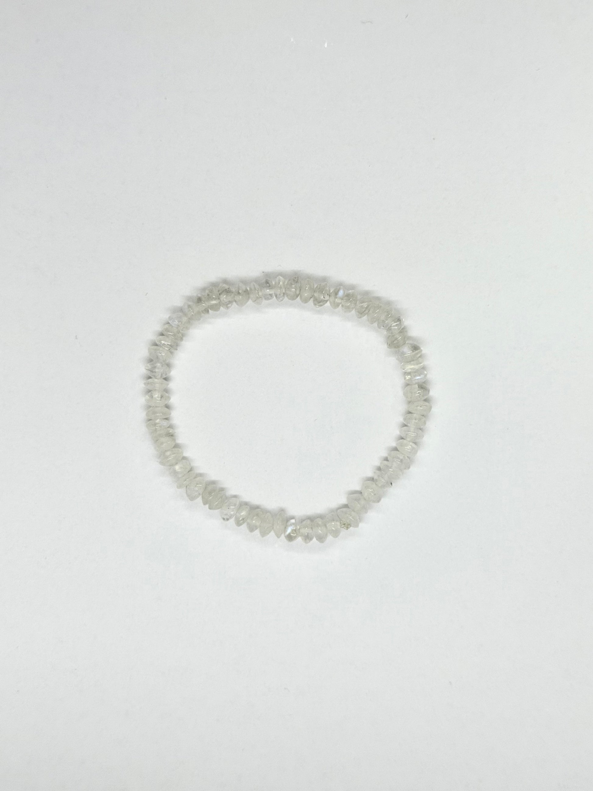 Braccialetto realizzato a mano con pietre di luna naturali, ognuna unica e irregolare, come la bellezza autentica di chi lo indossa. Elastico, comodo e personalizzabile, accompagna il polso con delicatezza, portando con sé l’energia intuitiva e femminile della luna.